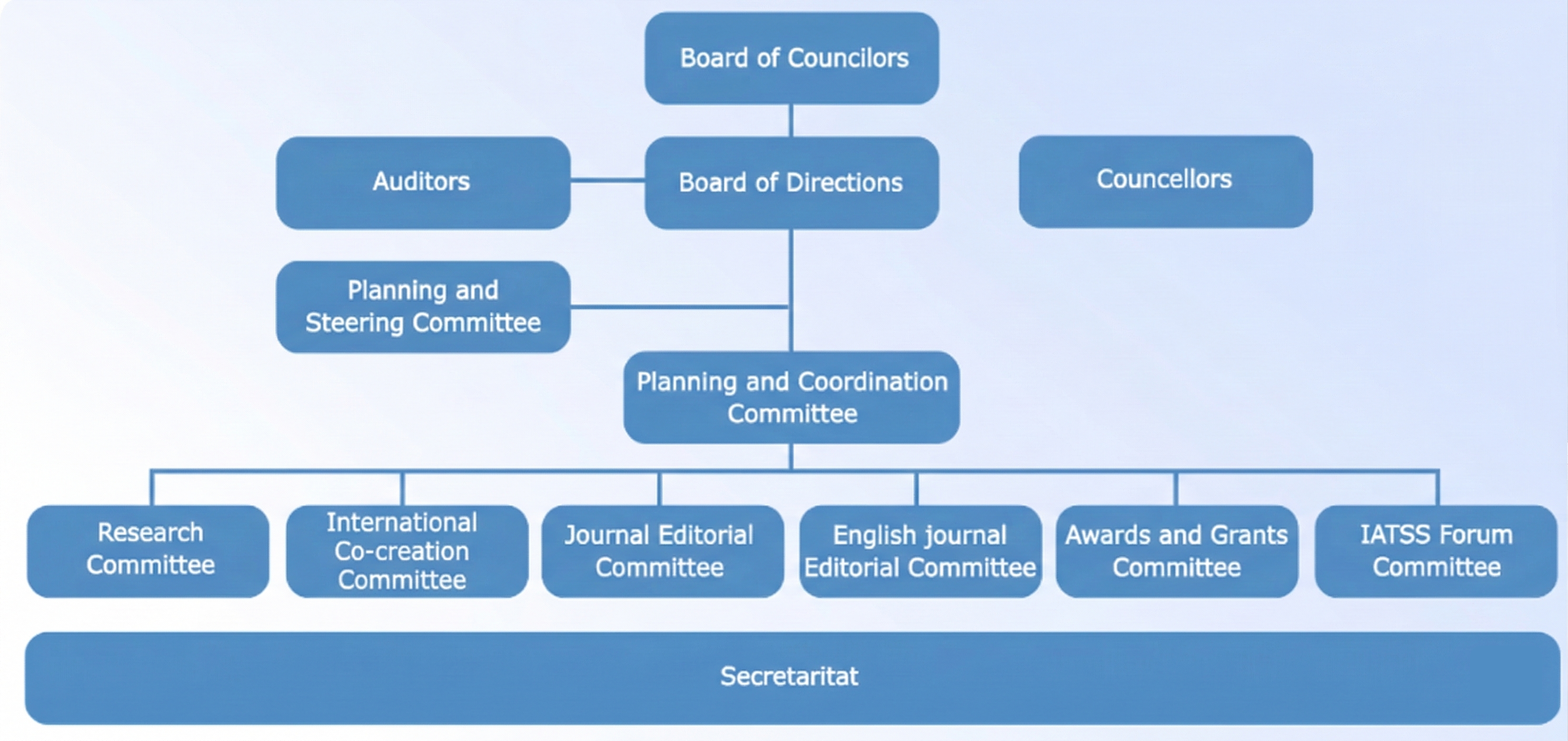 The IATSS is composed of councilors, directors, and departments that lead the Association's activities. Specifically there are the following four departments: (1) Research Department, (2) International Collaboration Department, (3) Journal Editing Department, (4) English Journal Editing Department, (5) Awards and Grants Department and (6) IATSS Forum Department. The activities of these departments are coordinated by the Planning and Coordination Committee. Members of the Association belong to these departments to conduct research activities and promote various projects. In principle, they also participate in the committees established within the departments.